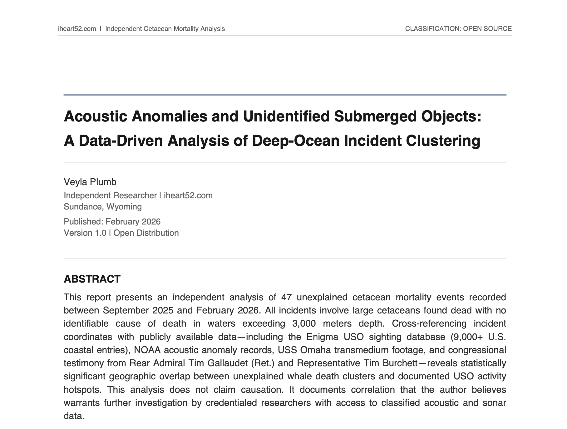 When you subscribe, you'll immediately receive Veyla Plumb's full research report: "Acoustic Anomalies and Unidentified Submerged Objects: A Data-Driven Analysis of Deep-Ocean Incident Clustering."